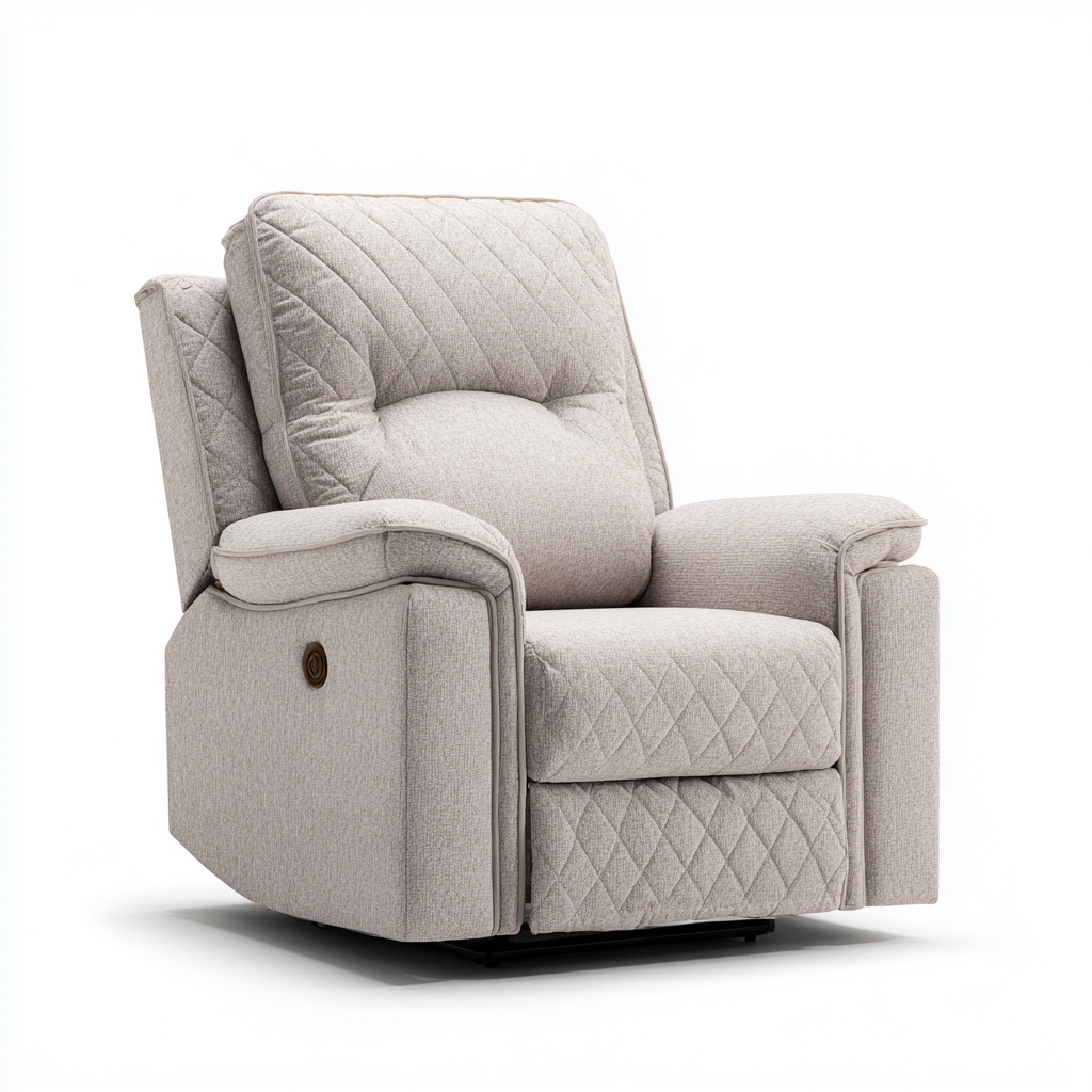Die Rückenlehne lässt sich stufenlos verstellen und die Fußstütze klappt für eine komfortable Liegeposition nach oben. Weiche Armlehnen erhöhen zusätzlich den Sitzkomfort. Seitlich befindet sich eine leicht zugängliche Bedientaste.